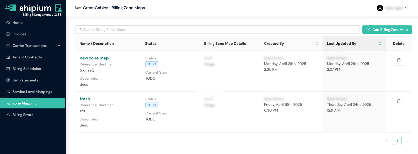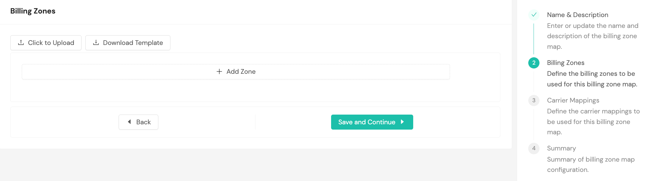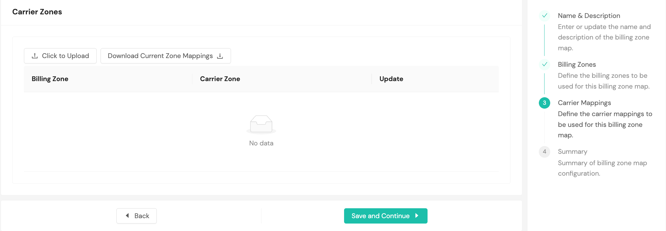 - Zone Mapping. Configure billing zone mappings for rate calculations.