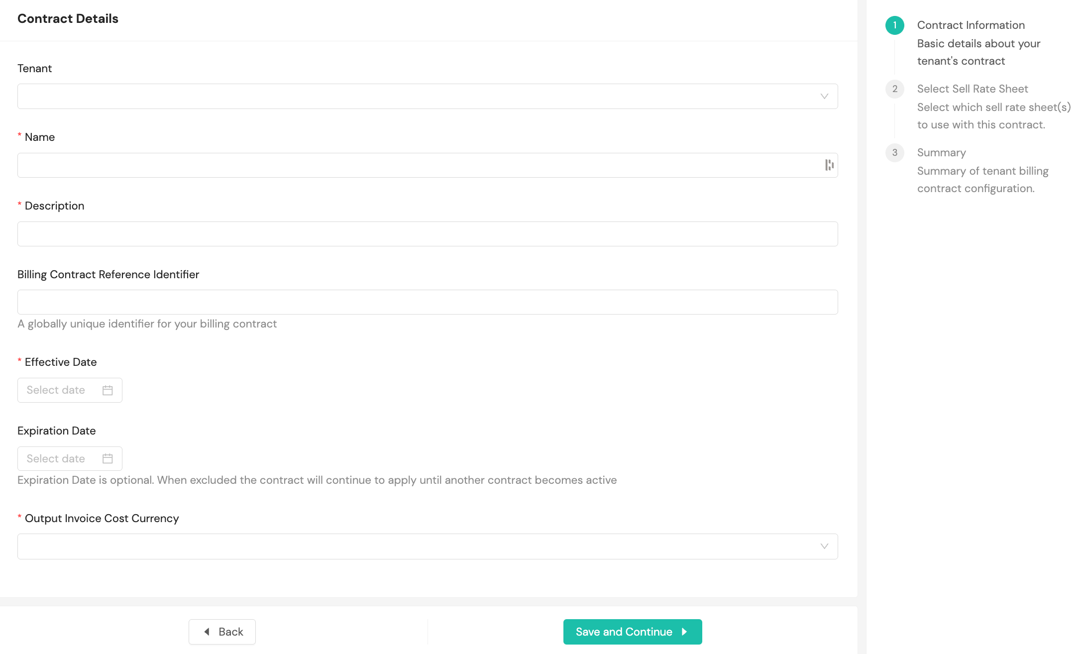 - Tenant Contracts. Configure billing contracts specific to each tenant.