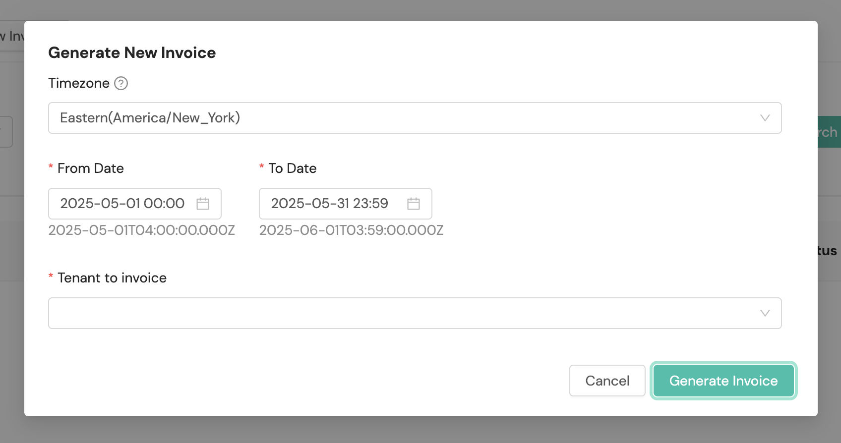 - Generate and manage invoices for your organization and tenants (if applicable)