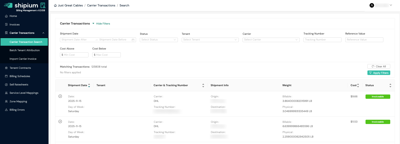 Your organization's use case determines which Billing Management features are most relevant. Contact your Shipium representative to discuss your requirements and ensure the platform is configured for your needs.