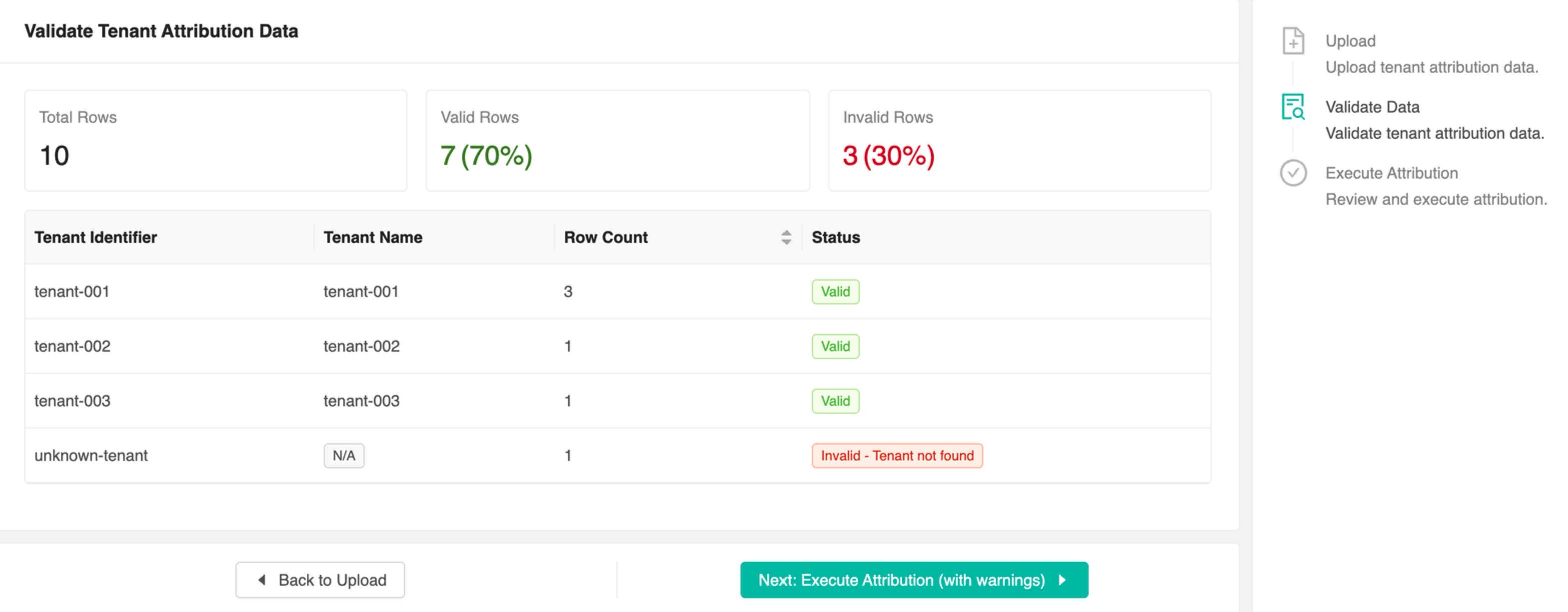 - Unattributed transactions. Carrier transactions that need tenant assignment. Select Review Unattributed Transactions to assign them to the appropriate tenant. This pending action is visible to organizations configured with a tenant view.
