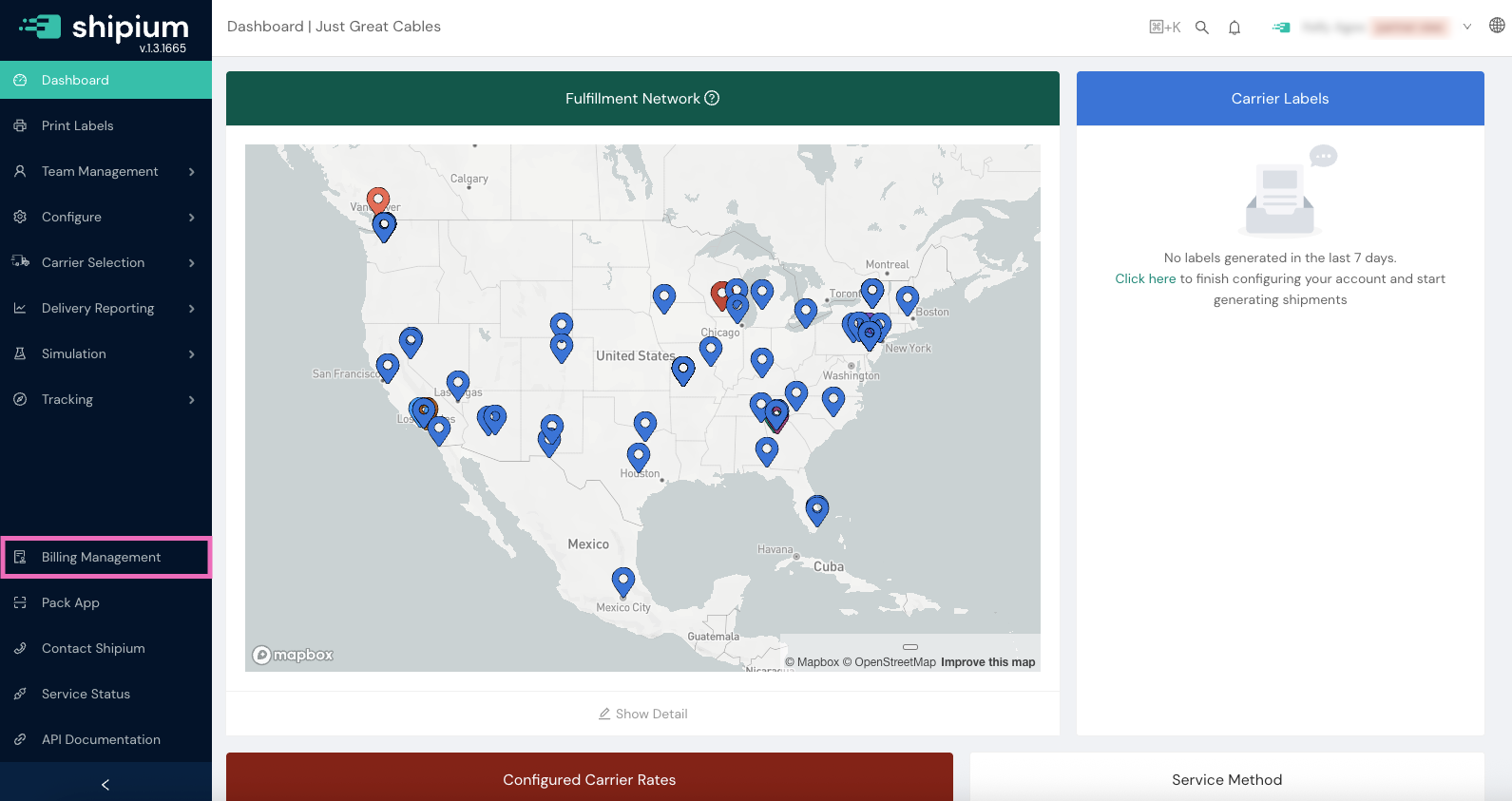 What you see in Billing Management depends on how your organization is configured. Shipium configures your organization during onboarding based on your use case:
