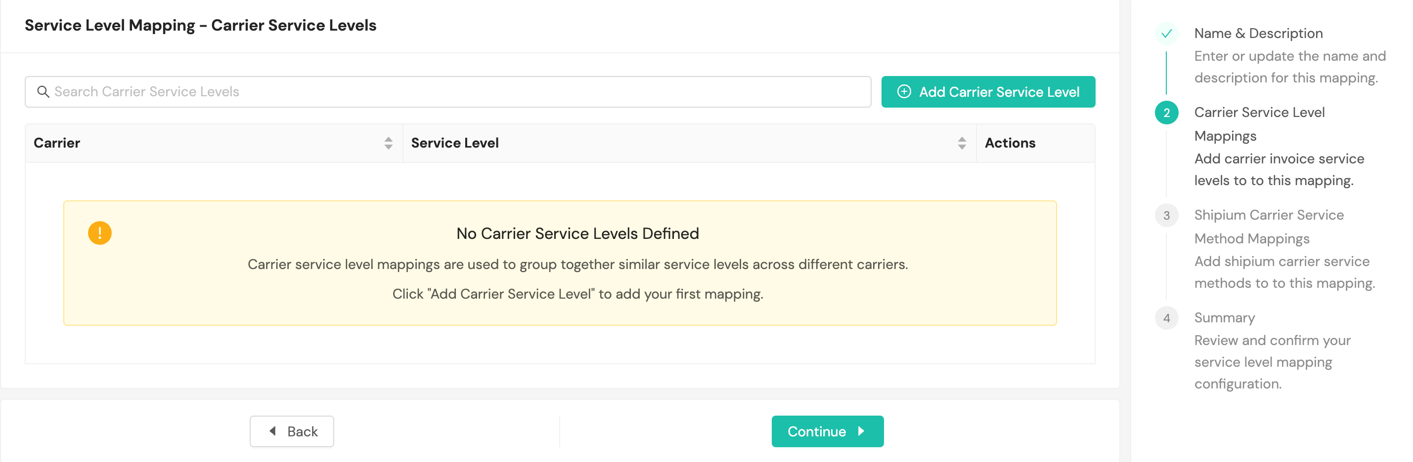 - Service Level Mappings. Map carrier service levels to standardized categories.