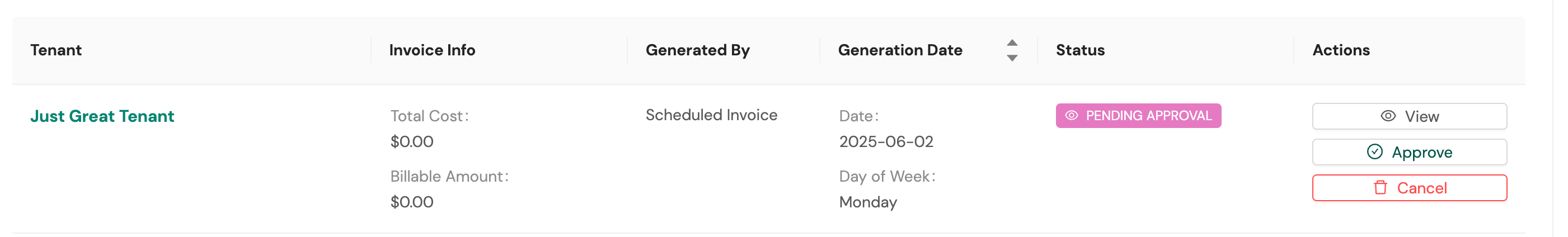 - Billing Schedules. Set up automated invoice generation schedules for your tenants.