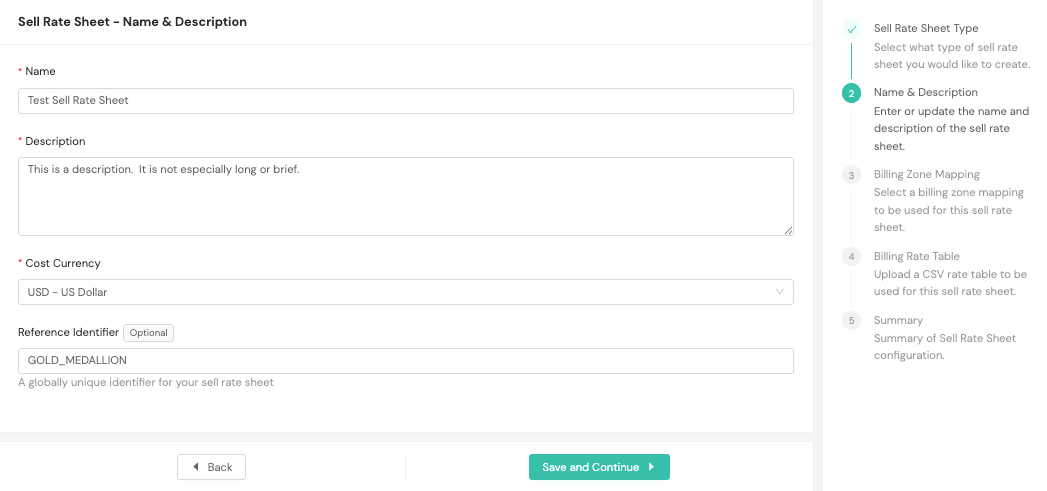 Next you'll provide a name, description, the currency for costing, and an optional reference identifier.