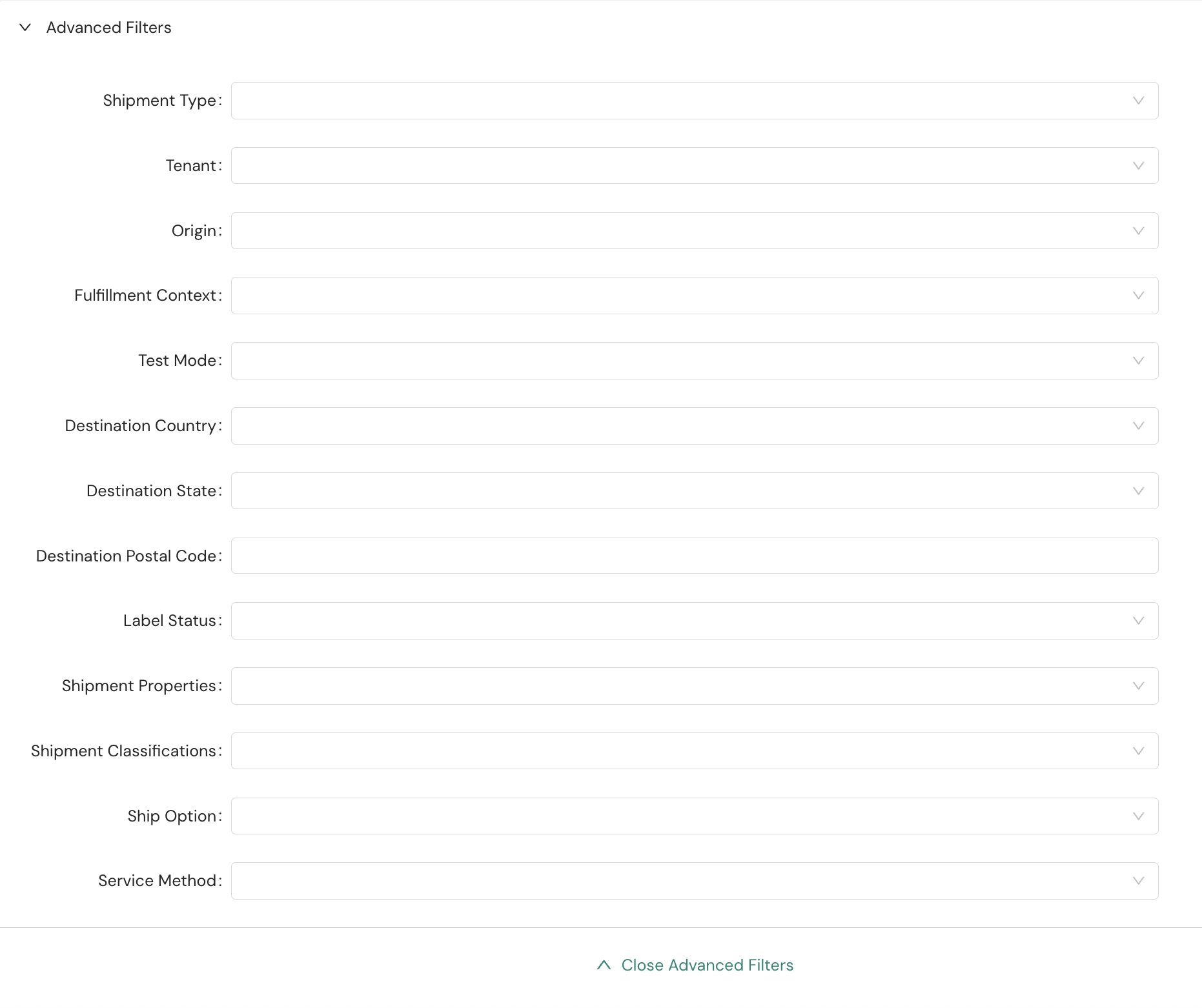 - Tenant. The tenant filter allows you to filter shipments by the tenant with which they are associated.