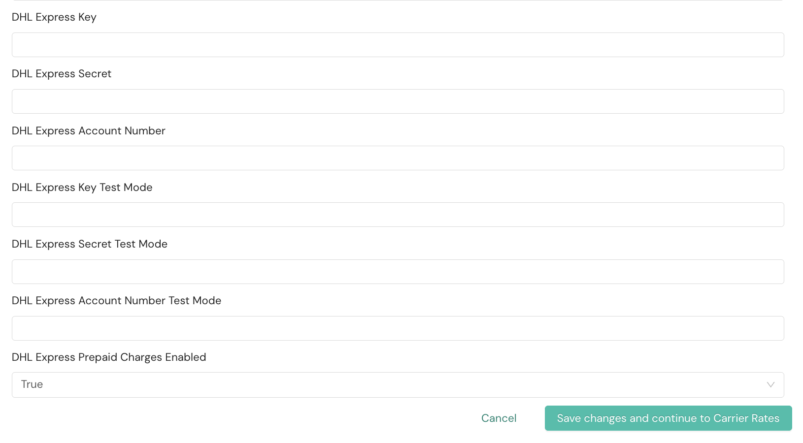 Step 1: Confirm DHL Express account enablement. The prepaid charges feature requires account-level enablement with DHL Express. Contact your DHL Express representative to confirm that your account is configured for prepaid charges.