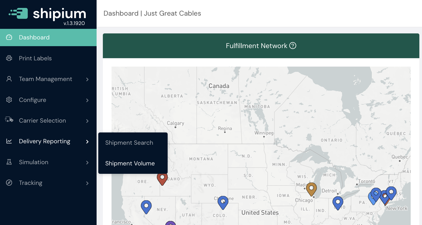 Navigate to Delivery Reporting > Shipment Volume in the Shipium Console left navigation.