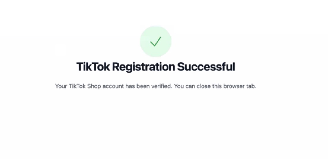 After TikTok confirms authorization, you will be automatically redirected to Shipium. When you see the TikTok Registration Successful confirmation, your account has been verified and you can close the browser tab.